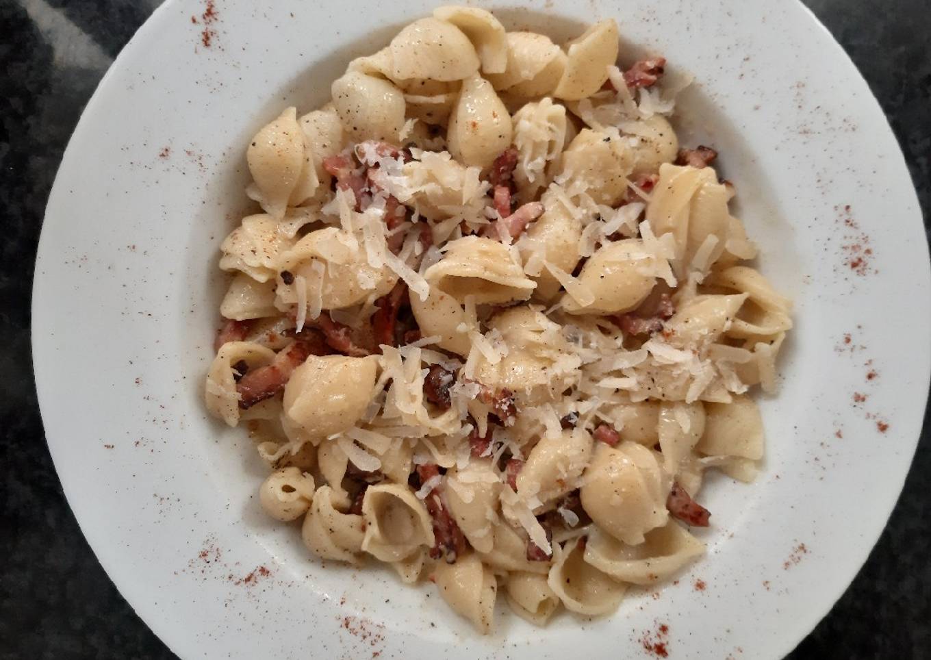 - Mettez les pâtes dans une assiette et versez la carbonara sur les pâtes