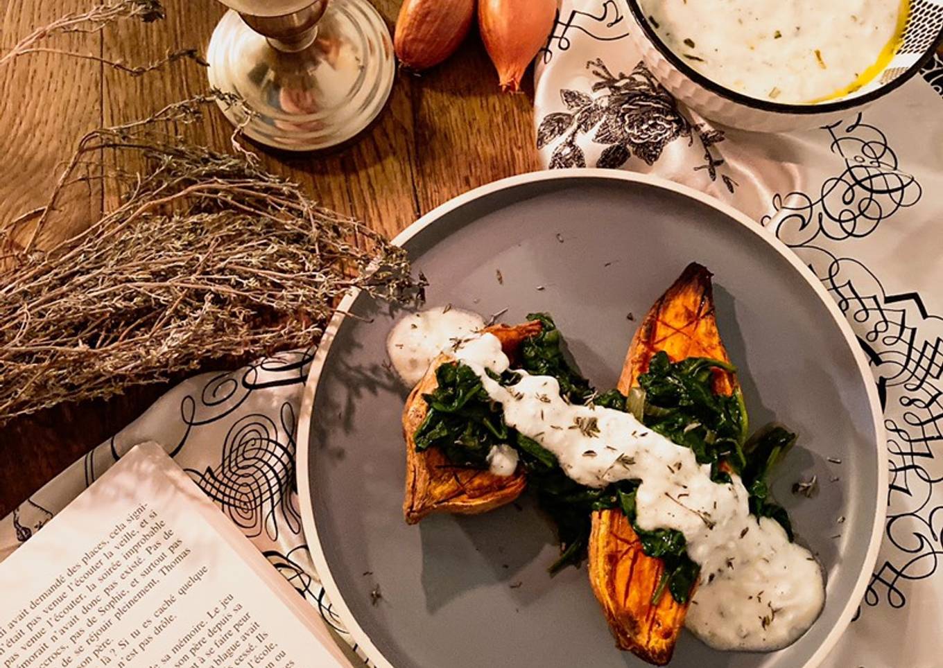 - Placez dans votre assiette les patates douces, les épinards et la sauce au yaourt. Et bon appétit! ;)