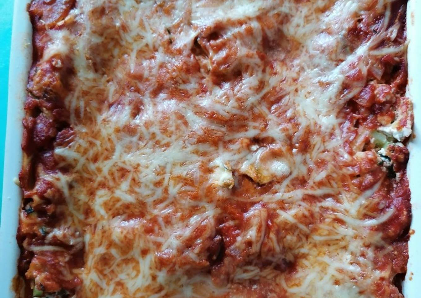 - Pour le montage mettre un tout petit peu de sauce tomate au fond du plat mettre la pâte à lasagne puis la moitié du mélange ricotta courgette et la moitié de la sauce tomate, refaire ceci encore une fois